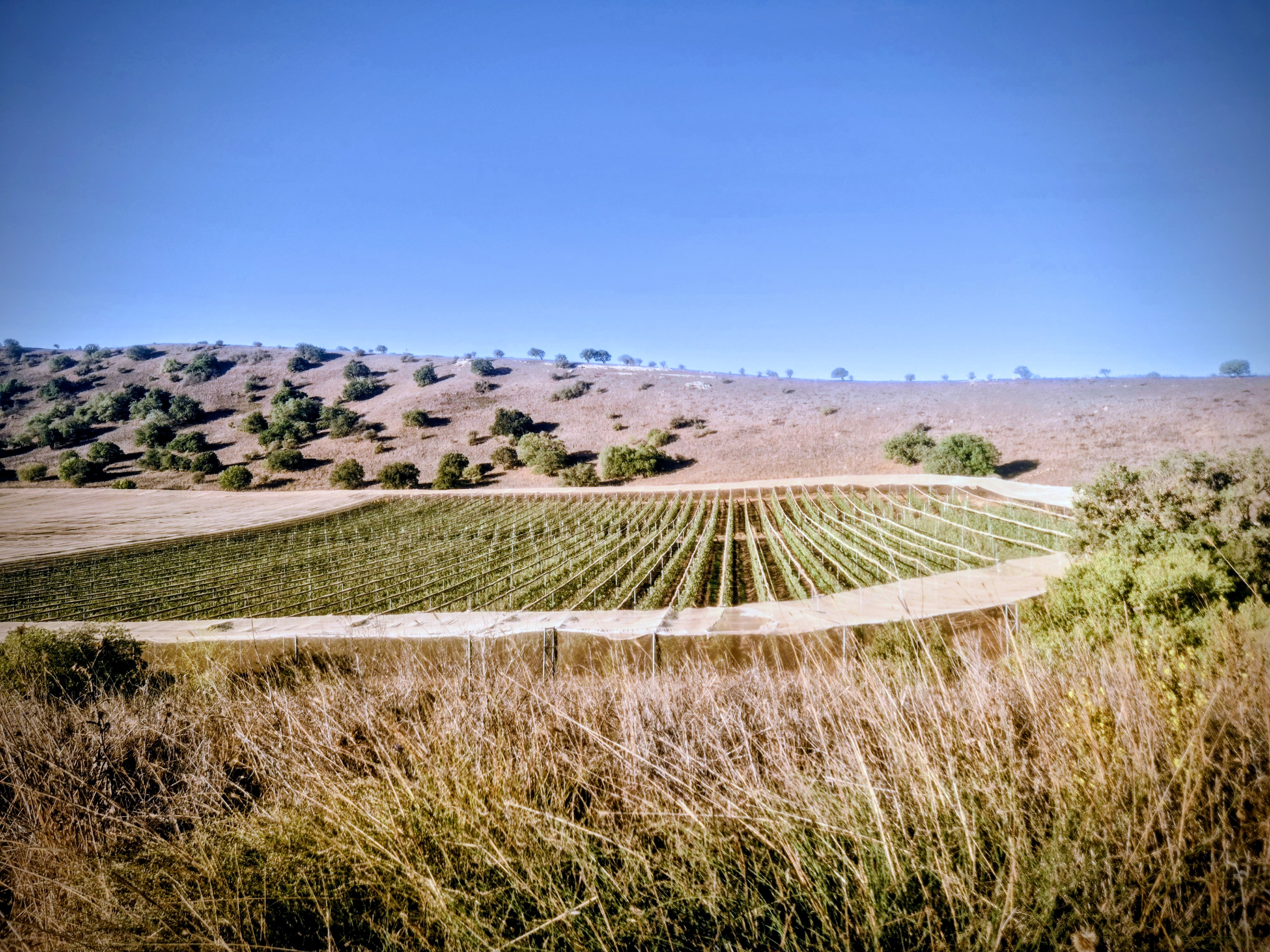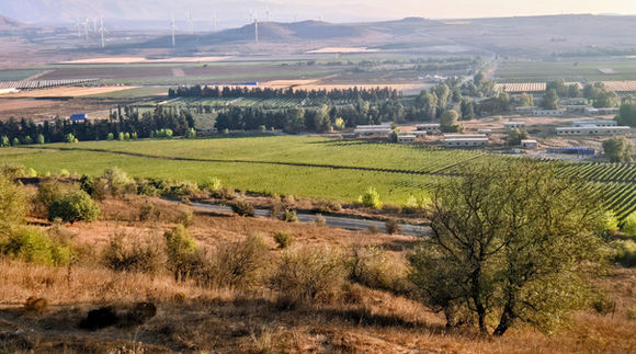 We run about 1.5 kilometers with the Kaldara Valley stretching to our right along the way, and then begin the climb toward the junction between Mount Avital and Mount Bental.