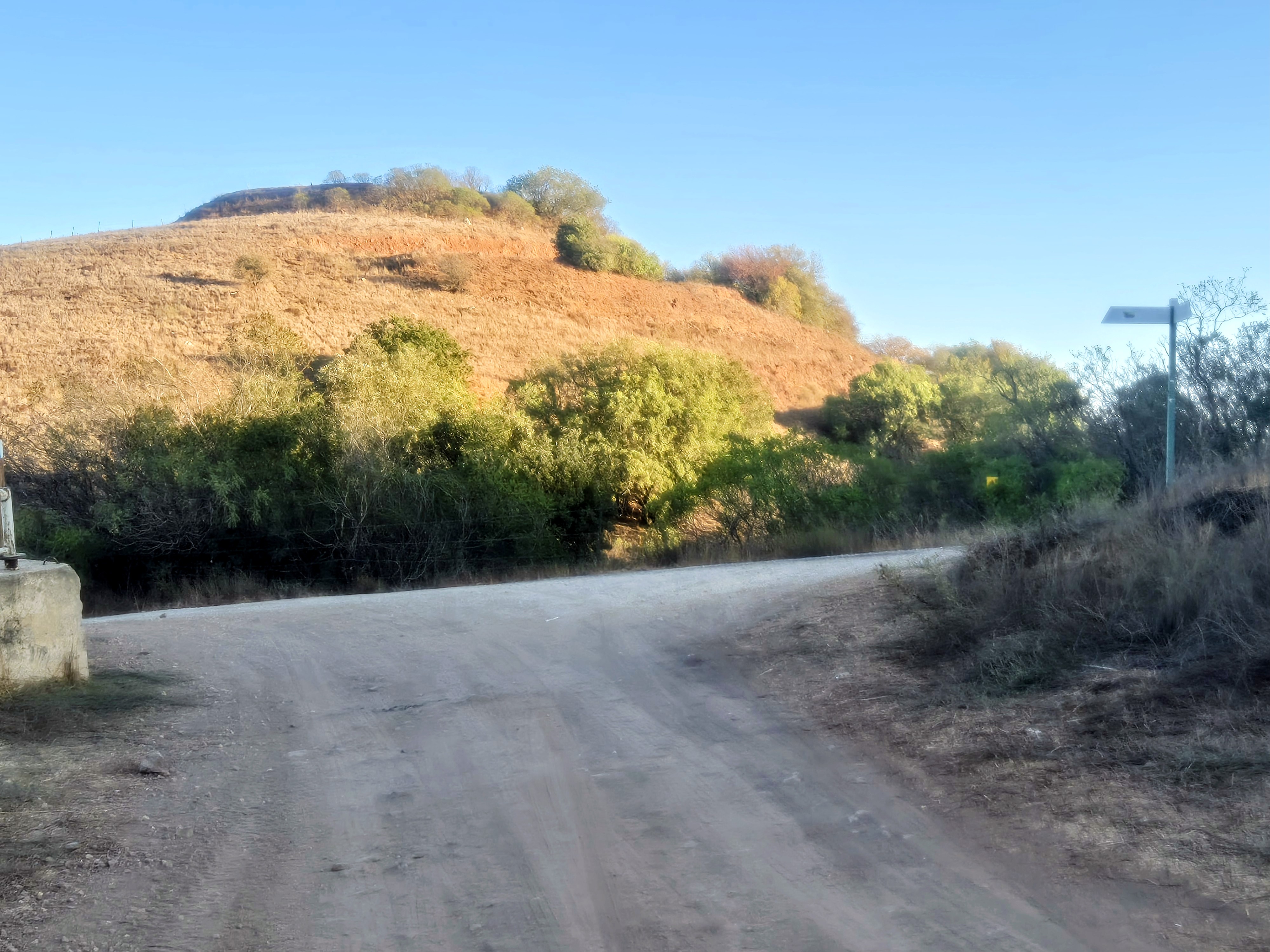 At the end of the loop around Mount Avital, we reach a paved road and turn right.