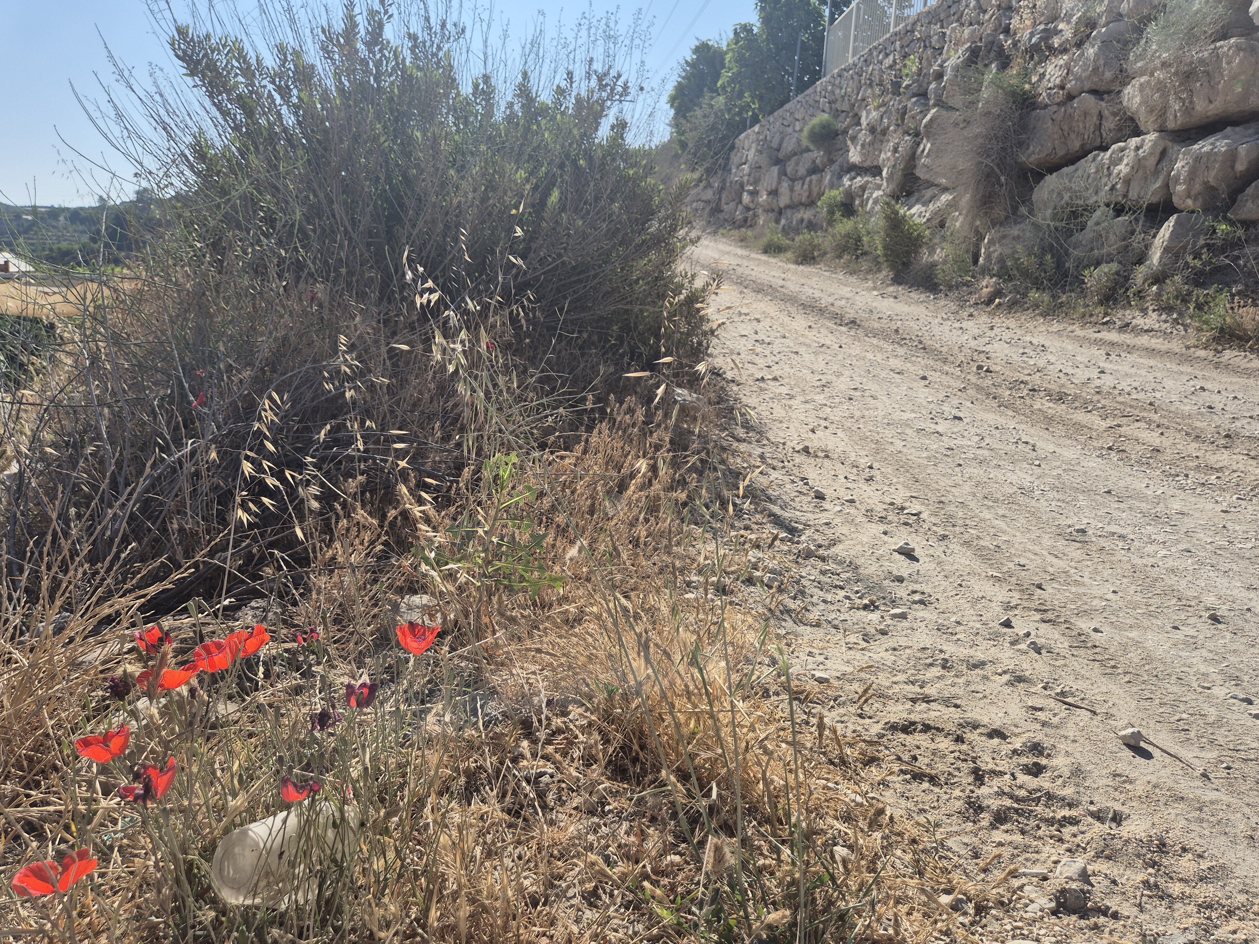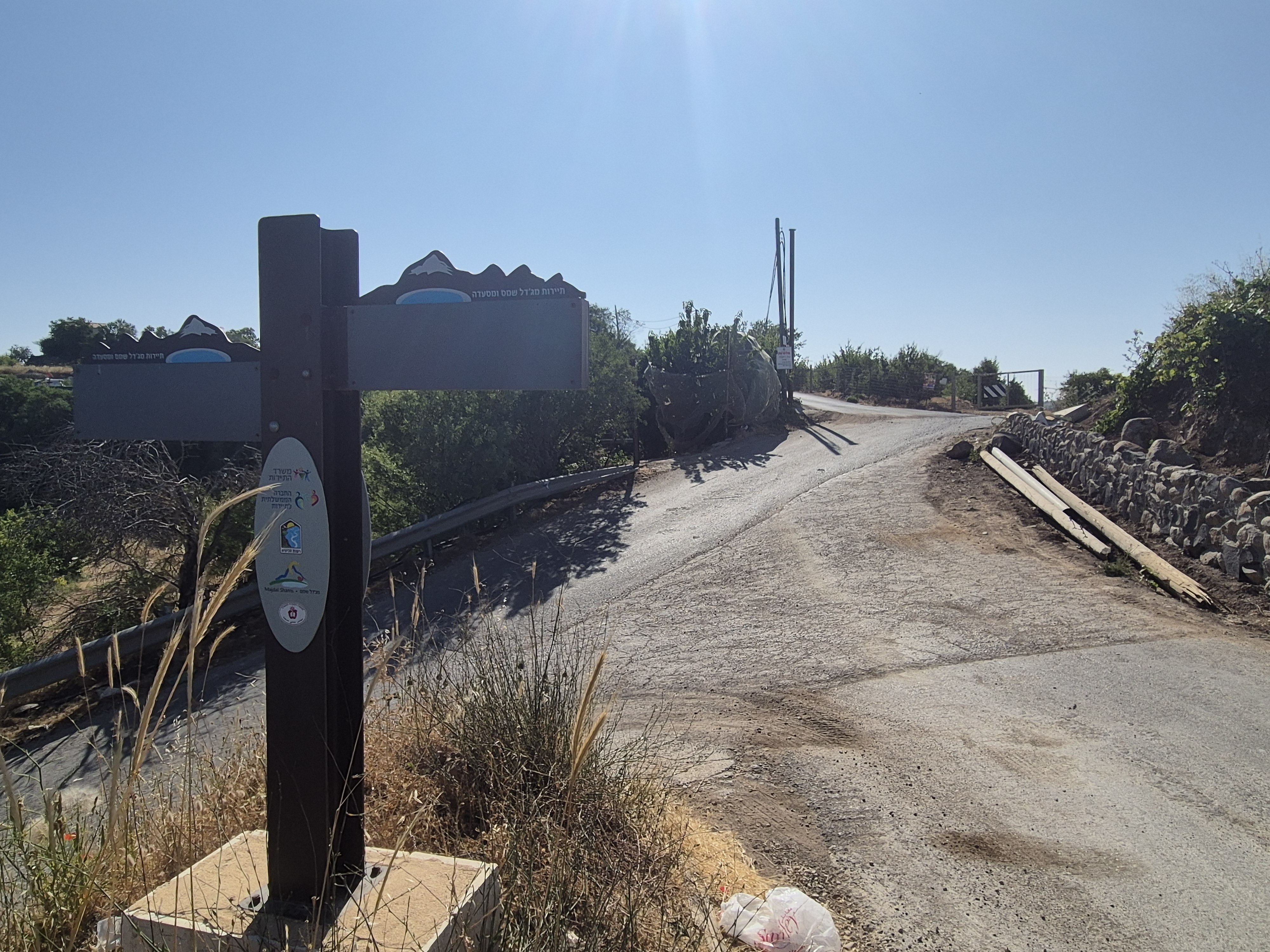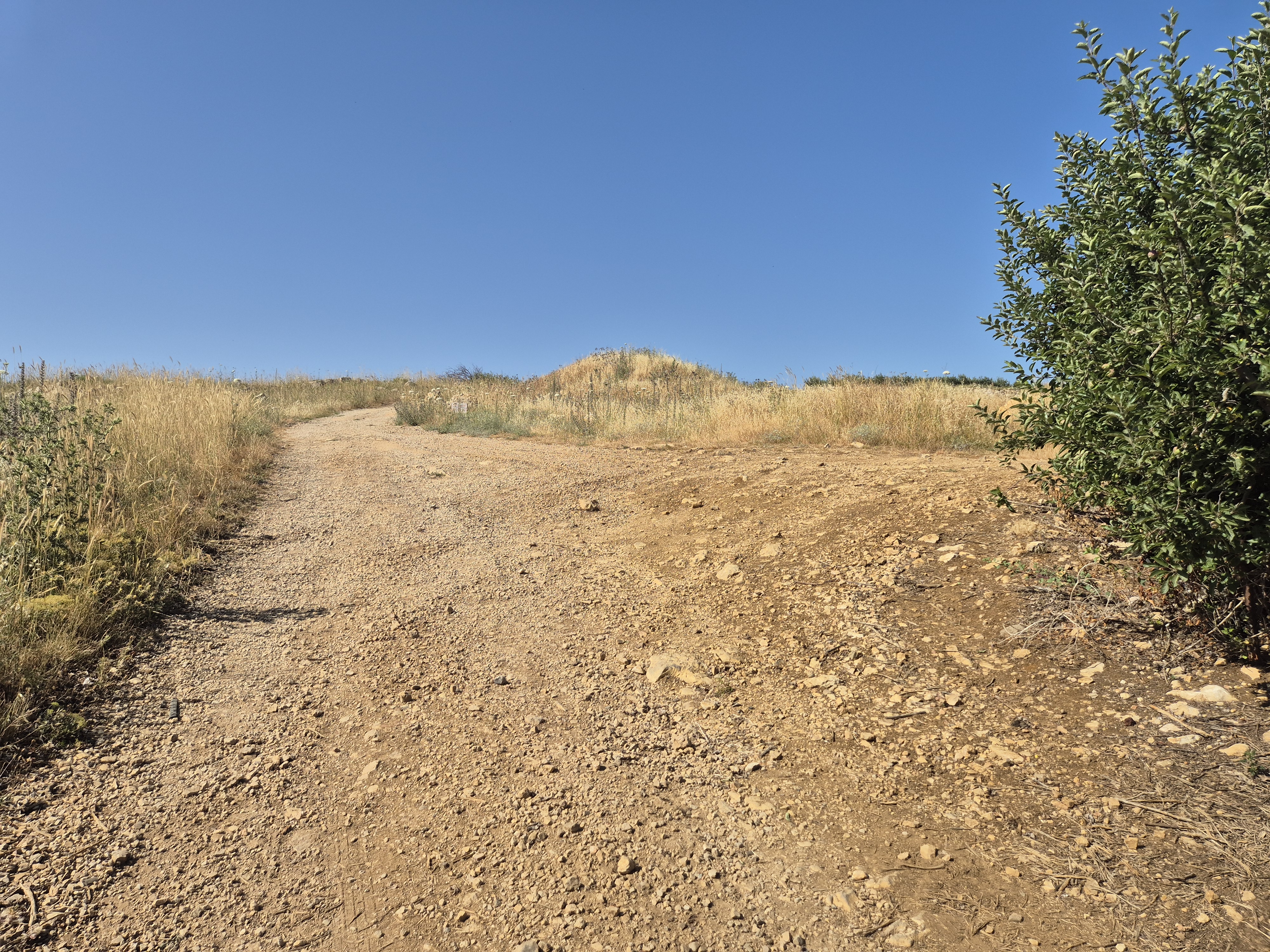 After 700 meters, there is a sharp left turn leading to a descent that actually continues along the Golan Trail. Turn left again.