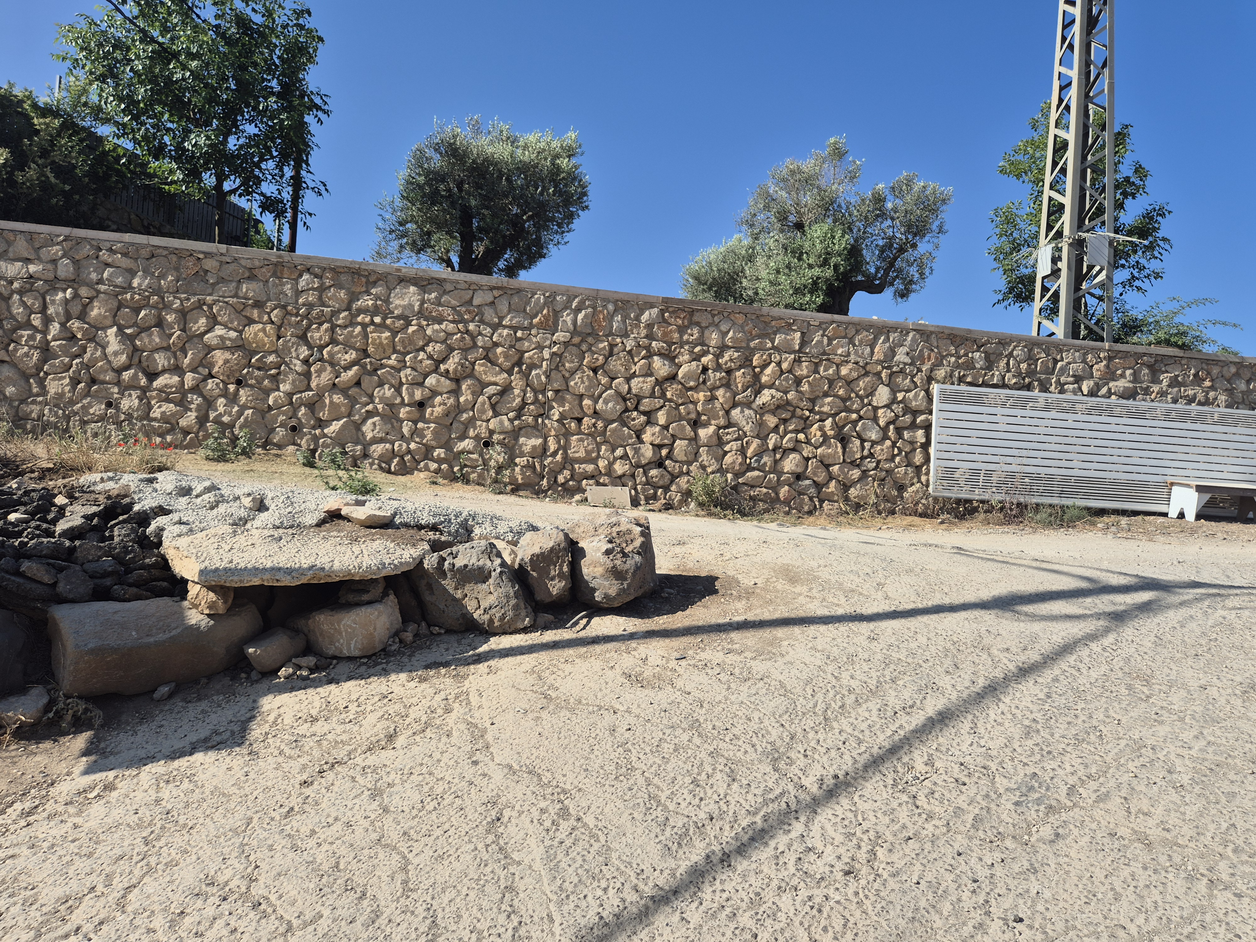 After 1.4 kilometers, turn right onto the Golan Trail. Continue uphill for about 200 meters, leave the Golan Trail and turn right again. About 100 meters ahead, you’ll see a few pine trees — and at this point, the Yaafuri Shrine will be on your right.